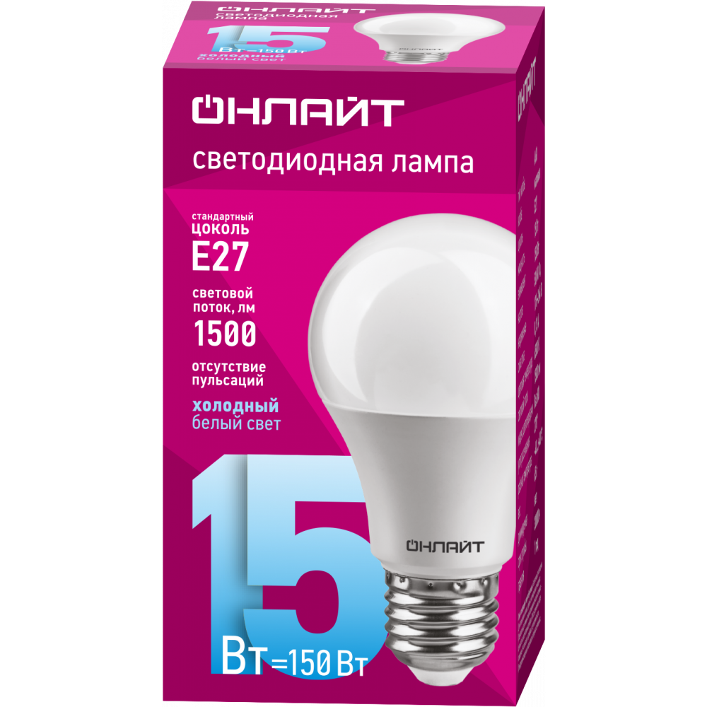 Светодиодная лампа E27 15Вт 230В 6500К ОНЛАЙТ
